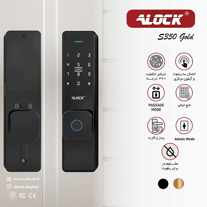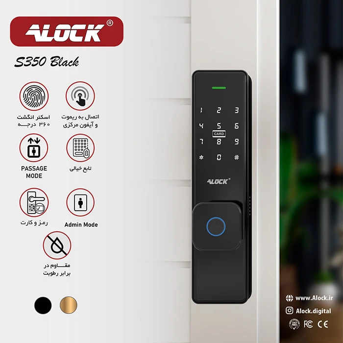 قفل دیجیتال S350 یکی دیگر از قفل های اثر انگشتی تولید شده توسط شرکت ALOCK می باشد. قفل دیجیتال اثر انگشتی S350 بر اساس ساختار آناتومی بدن و دست طراحی و تولید شده است. این طراحی خاص سبب محبوبیت این مدل از محصول در مقایسه با قفل های دیجیتالی شده است که از نوع اسکنرهای لوکالیزه استفاده می کنند. نیاز کشور و پروژه های مسکونی و اداری به امنیت با تکنولوژی های به روز سبب طراحی های خاص در صنعت قفل های الکترونیکی ALOCK شده است. یکی از ویژگی های دستگیره هوشمند S350 طراحی زیبا و ظریف با نوع اسکنر بیومتریک ارگونومیک می باشد. این قفل با قطعات ساخت ژاپن طراحی و تولید شده که سبب افزایش طول عمر این محصول در مقایسه با دیگر محصولات در بازار شده است.