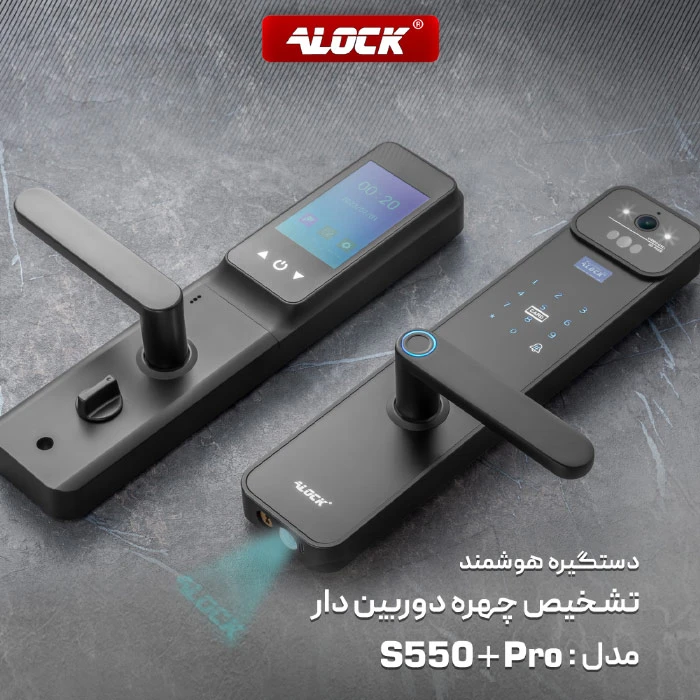 در این محصول و آپدیت جدید عرضه شده، می توانید برای هر کاربری که تمایل دارید، با اپلیکیشن رمز اختصاصی تعیین کنید و حتی می توانید برای هر رمز روز مشخصی از هفته و نیز ساعات دسترسی مشخص تعریف کنید. یعنی کاربری به نام مرتضی می تواند در فقط روز های یکشنبه تا پنجشنبه در ساعات 9 الی 16 با رمز مشخص تردد داشته باشد و در زمان ها و روزهای دیگر قادر به باز کردن نخواهد بود. در آپدیت جدید این دستگیره، بر روی دستگیره مموری کارت 8 گیگا بایت نیز قرار گرفته شده تا تصاویر و فیلم های ضبط شده را بتوان از محصول استخراج و مشاهده کرد. در این نسخه جدید بدون نیاز به لمس کلید زنگ، از هر کجای دنیا کاربر با موبایل قادر خواهد بود دوربین دستگیره را فعال کرده و بصورت دوربین مخفی اقدام به مشاهده بیرون با قابلیت ارتباط صوتی و تصویری نماید. در این محصول قفل تشخیص چهره دارای طراحی زیبا و چشم نواز می باشد. اسکنر اثر انگشت این محصول از نوع خازنی و بسیار حساس می باشد. تکنولوژی تشخیص چهره در قفل تشخیص چهره ALOCK بصورت تکنولوژی دو چشمی عمقی (Double Eyes Deep Sense Scan) می باشد. در این دستگیره بیومتریک، می توانید با نهایت امنیت و سختگیری تردد کنید. در این محصول دو نوع سیستم شناسایی بیومتریک به کار رفته است: اثر انگشت زنده و چهره 3 بعدی مادون قرمز. در این محصول می توانید با تائید دو مرحله ای بیومتریک اقدام به بازکردن درب نمایید. به عنوان مثال هنگام قرار گرفتن مقابل دستگیره ابتدا چهره شما شناسایی شده و سپس با وارد کردن اثر انگشت خود درب را باز نمائید، به گونه ای که مثلا درب را دو قفله نموده اید. این بالاترین نوع سخت گیری بیومتریک امنیتی می باشد. مدل S550+ Pro، یک محصول دیجیتال کاملا متفاوت با قابلیت عملکرد کاملا هوشمند می باشد. چشمی دیجیتال این دستگیره هوشمند دارای کیفیت 8 مگا پیکسلی بوده و به هنگام لمس کلید زنگ، فعال شده و تصایر افراد مقابل درب را ذخیره کرده و بر روی مانیتور داخلی به نمایش می گذارد. علاوه بر آن این قابلیت را دارد که بصورت آنلاین تصویر افراد را برای مدیر بر روی تلفن همراه ارسال نماید. در این دستگیره بیومتریک می توانید با نهایت امنیت و سختگیری تردد کنید. در این محصول قابلیت گزارش گیری بصورت آفلاین و آنلاین وجود دارد. علاوه بر آن نوع اسکنر اثر انگشت این محصول از نوع خازنی زنده بوده که از نوع اسکنرهای موبایل می باشد. علاوه بر آن این اسکنرها در برابر رطوبت بسیار مقاوم بوده و دارای IP=65 می باشند. تابع خیالی نیز یکی دیگر از امکانات امنیتی برای جلوگیری از هک شدن رمز می باشد.